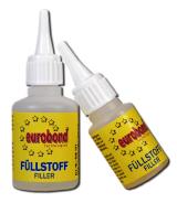 EUROBOND® FÜLLSTOFF · FILLER DIE CHEMISCHE SCHWEISSNAHT. Zum Ersetzen und Füllen fehlender Materialteile. Anwendbar auf Porzellan, Holz, Stahl, Buntmetalle, Kunststoffe, Keramik, Kork, Glas, etc. Man kann weggebrochene Plastikteile von Geräten ersetzen. Ausgebrochene Dübel und Schrauben werden mit Filler und Klebstoff professionell fixiert, weggebrochene Keramikteile ersetzt, Risse in Möbeln oder Bilderrahmen ausgebessert und vor allem lässt sich der Filler einsetzten, um fragile Klebestellen zu verstärken. Die ausgehärtete Oberfläche kann mechanisch bearbeitet (gefeilt, gebohrt, lackiert) werden. Nur in Verbindung mit EUROBOND® Hochleistungsklebstoff zu verwenden.